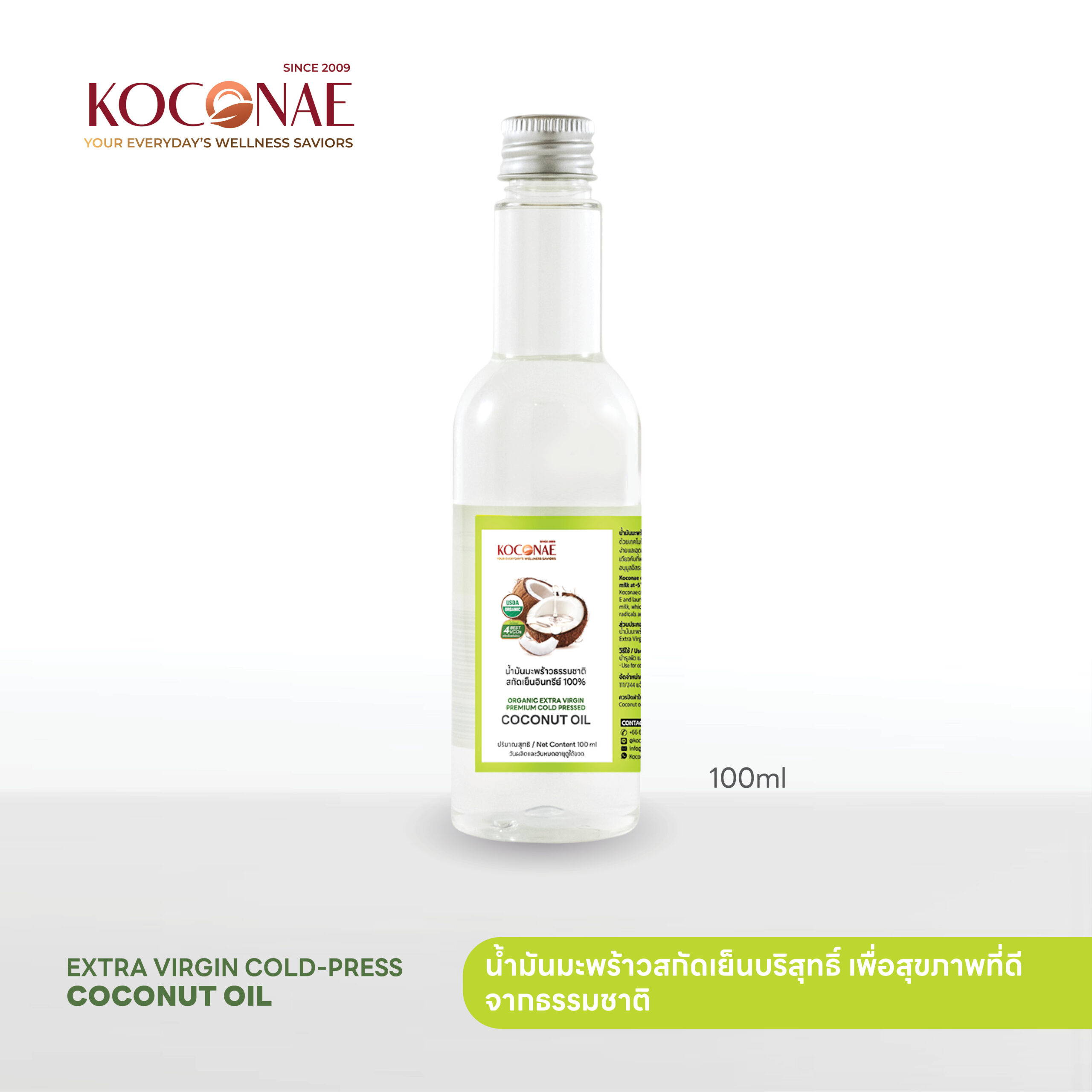 Koconae Extra Virgin Premium Cold-Pressed Coconut Oil น้ำมันมะพร้าวสกัดเย็นโคโคเน่ ผลิตจากกะทิสดที่มีคุณภาพสูง ผ่านกระบวนการที่อุณหภูมิ -5°C ด้วยเทคโนโลยี Centrifugal Separation ซึ่งเป็นกระบวนการสกัดที่ทันสมัย ทำให้น้ำมันมะพร้าวมีความบริสุทธิ์สูง สามารถเก็บรักษาคุณค่าจากน้ำมันมะพร้าวธรรมชาติได้อย่างครบถ้วน มีเนื้อสัมผัสบางเบา ใสสะอาด และโมเลกุลเล็ก ซึ่งทำให้สามารถดูดซึมได้อย่างรวดเร็ว และยังมีรสชาติที่รับประทานง่าย สามารถใช้ได้ทั้งในอาหารหรือเครื่องดื่ม โดยเฉพาะการรับประทานแบบเพียวๆ ก็ไม่มีกลิ่นเหม็นหืนแบบที่มักพบในน้ำมันมะพร้าวทั่วไป
